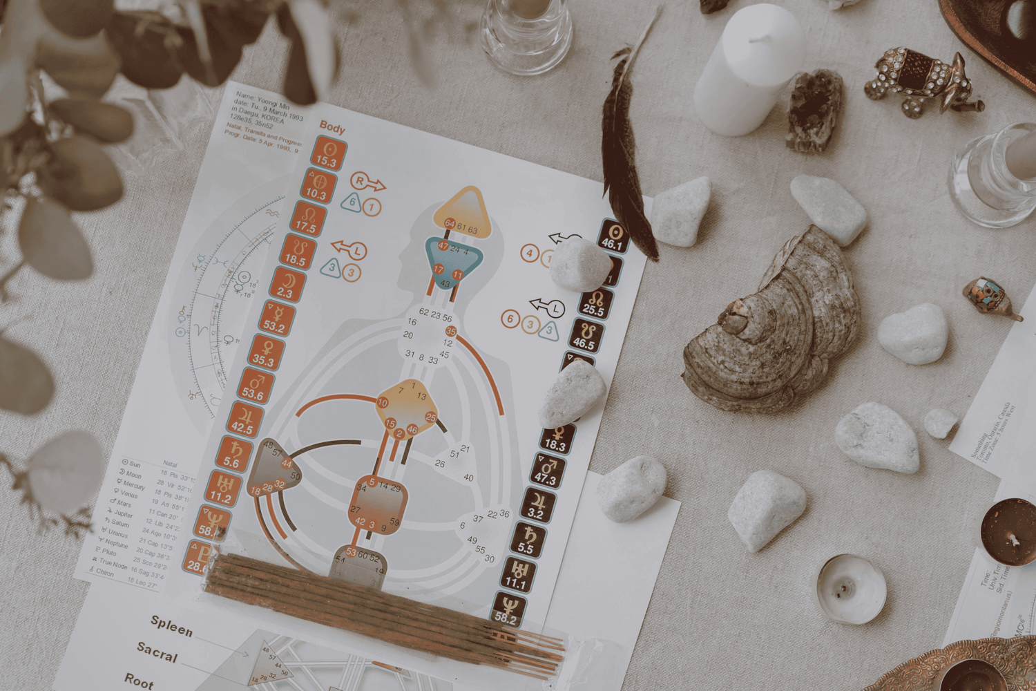 If Astrology is the "why", Human Design is the "how". Your bodygraph chart is a detailed guide of how to best utilize your energy, when and where to spend it, how to identify if you are in alignment, and the types of daily practices and environments that will help you thrive. This reading is formatted into your own custom website, with a personalized link and password protection. Some key aspects of your design that I cover: